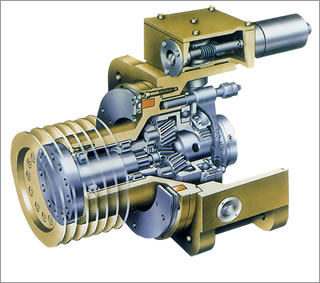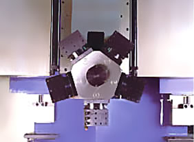 Индексирование револьверной головки выполняется при помощи муфты с криволинейными зубьями, обеспечивая точность 5” и повторяемость 3”. Револьверная головка выдерживает большое усилие резания, гидромотор с высоким крутящим моментом обеспечивает вращение. Плавность скорости вращения контролируется кулачковым механизмом. PLC обеспечивает выбор инструмента по кратчайшему пути, вращение инструментального диска может осуществляться по часовой стрелке и против для значительного уменьшения времени смены инструмента.