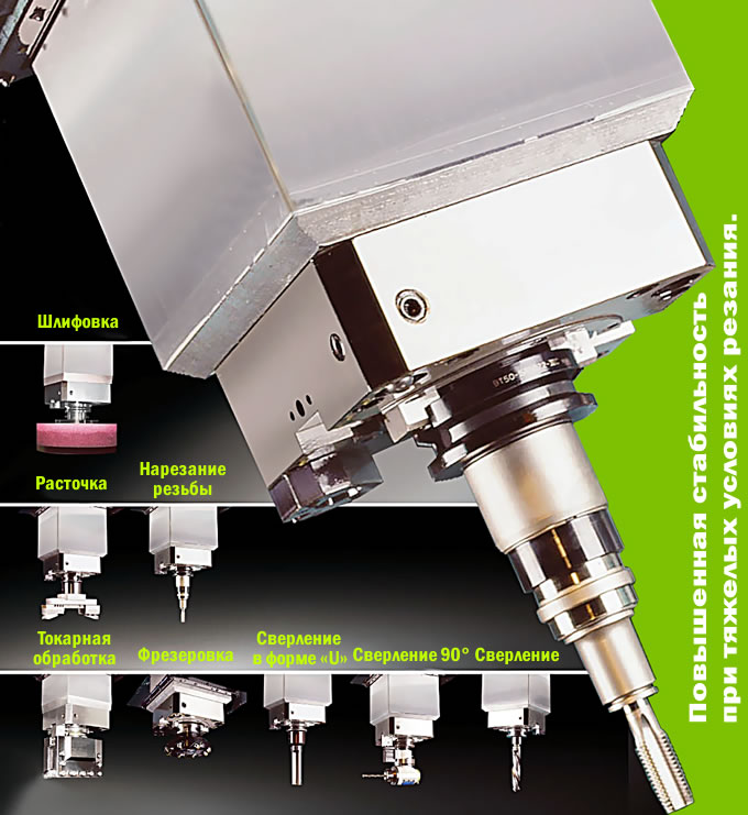 Обработка в сложных условиях зависит от мощности двигателя шпинделя. Станки оснащены двигателями Fanuc и коробкой передач ZF, с высоким крутящим моментом. Это позволяет работать в тяжелых условиях и выполнять целый ряд операций.