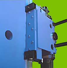 Траверса может перемещаться для адаптации к высоте заготовки, при помощи ШВП и серводвигателя. Траверса блокируется в нужном положении при помощи 4 мощных гидравлических цилиндров.